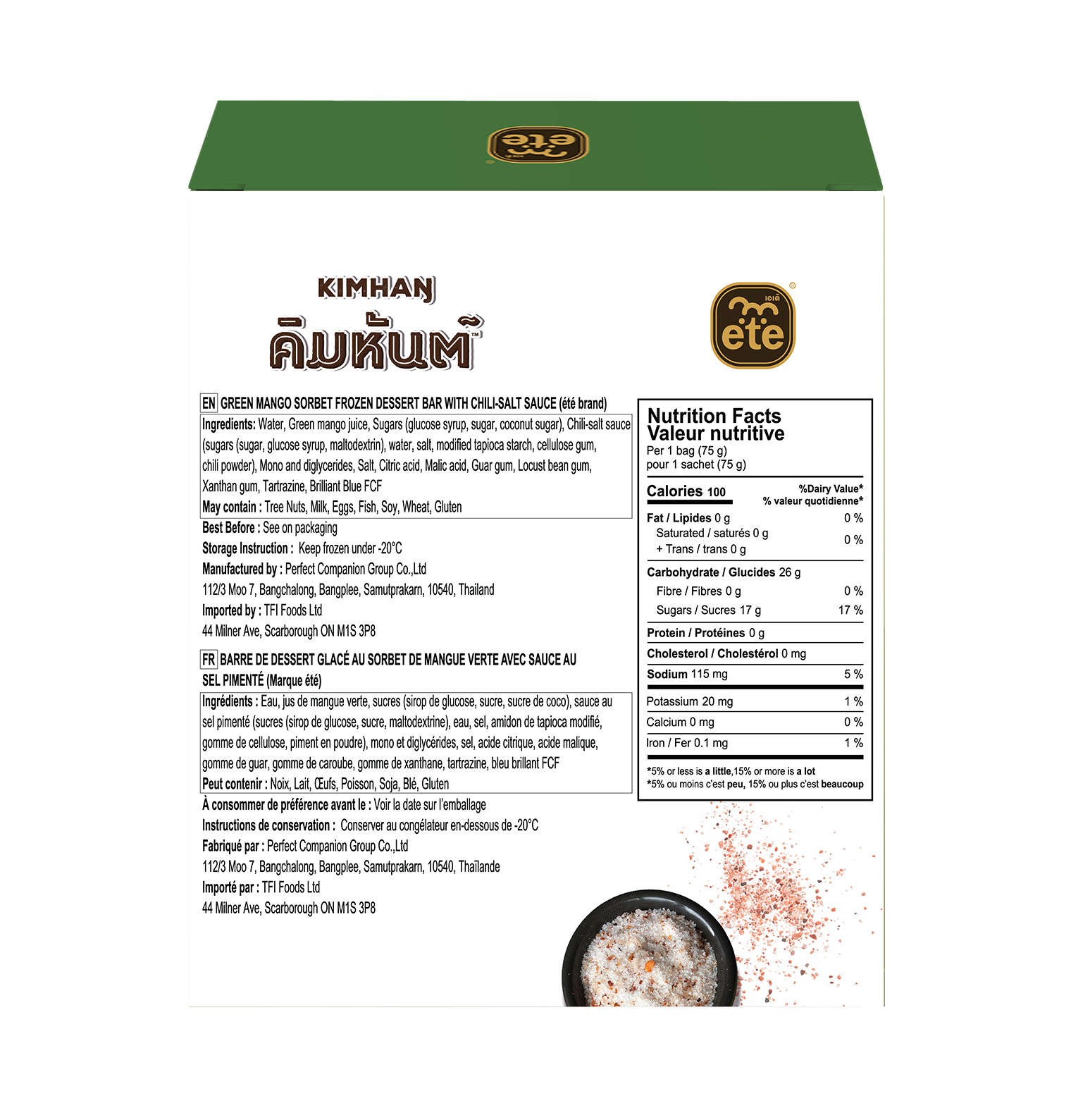 Ingredients: Water, Green mango juice, Sugars, salt...
